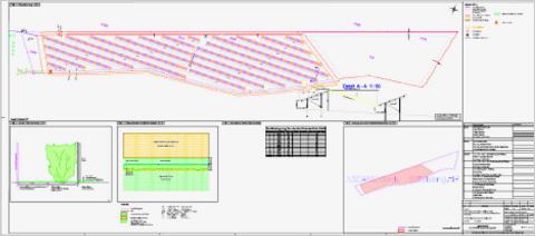 Plan aus dem Bauantrag mit Anordnung der Module und Gestaltung der Ausgleichsflächen
